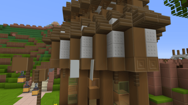 The pack makes use of much flatter looking designs compared to vanilla Minecraft. The creator has stripped away textures that feature too much detail, pulling away unnecessary allusions of depth and instead opting for a more minimalist style. This works very well when combined with the pack’s heavy use of rectangles and squares, matching Minecraft’s inherent blockiness and ultimately creating a very strong visual aesthetic.