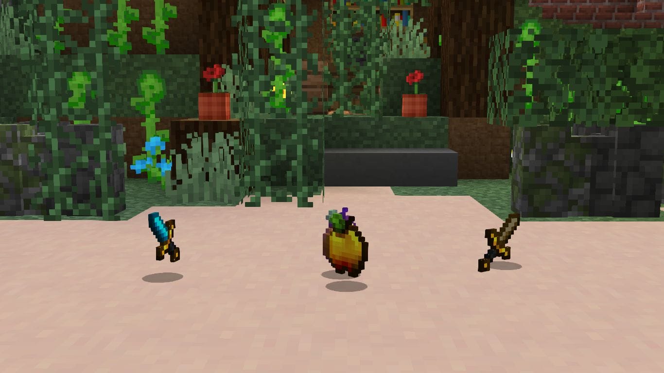 All of the items that you’ll be well accustomed to have brand new looks. The hilts of swords now have beautifully golden hues and beam out against the now jet black hotbar. Likewise, items like lava buckets and golden apples have been redesigned to match the pack’s swanky style, so your full arsenal for PVP play matches together like a custom built set.