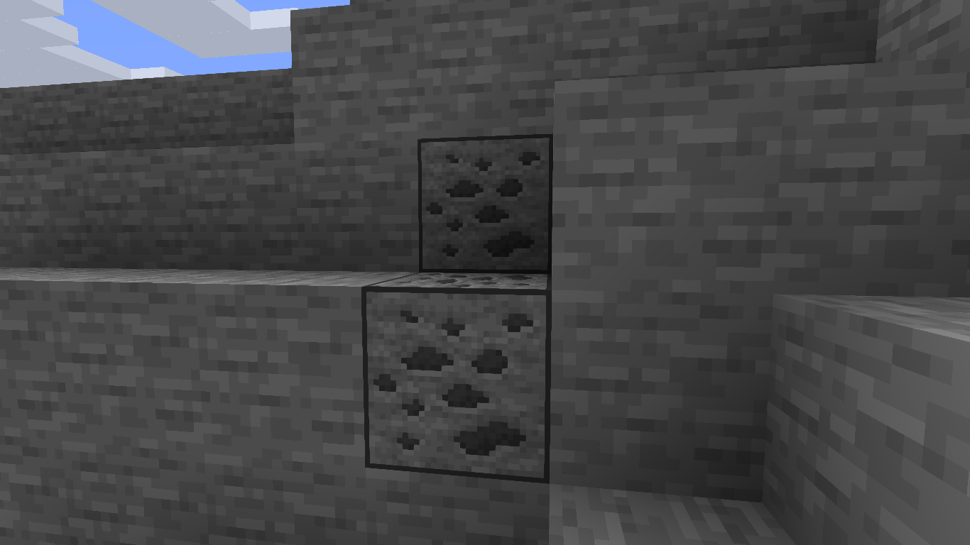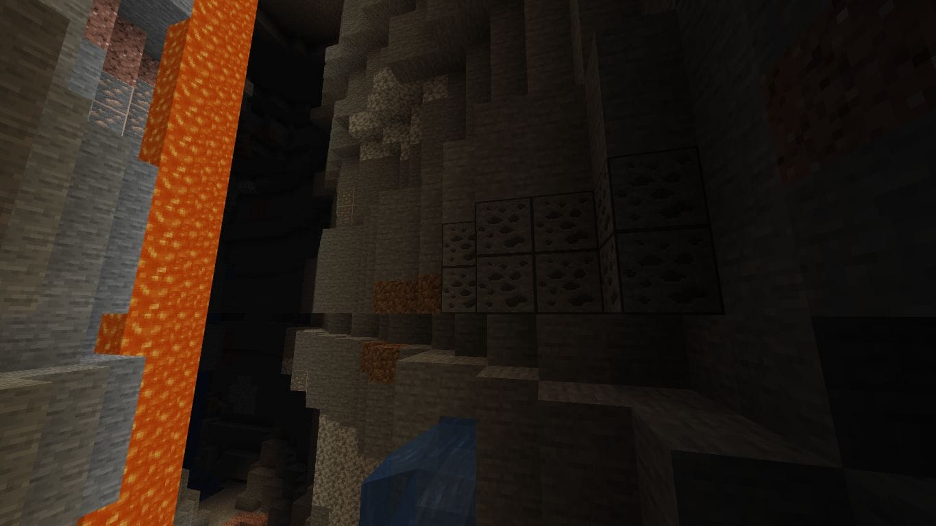 I also need to mention that the ore textures themselves are altered forms of the vanilla textures. The new versions are much more noticeable in the dark thanks to sharper edges and more granular details in light of the texture resolution jump up to 32×32.